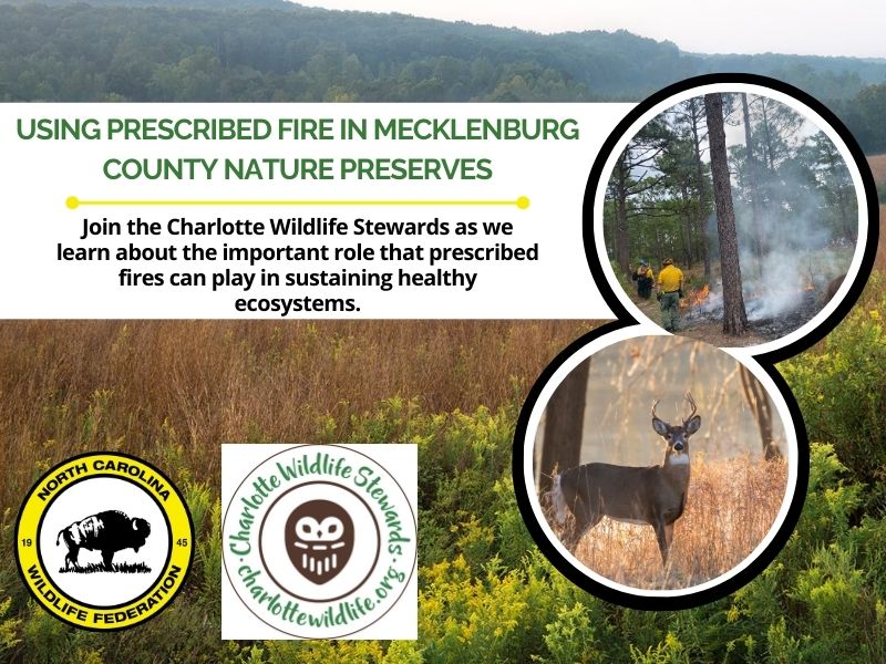 Prescribed fire. Controlled Burn. More people are becoming familiar with these phrases and the important role these intentional fires can play in sustaining healthy ecosystems. But what exactly is it and how are they conducted? Join NCWF Charlotte Wildlife Stewards as they welcome Katie Proctor, a Natural Resources Supervisor, to understand fire history and how it is used as a management tool in Mecklenburg County Nature Preserves.