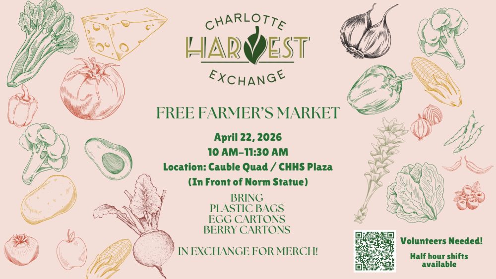 Events with a sustainability focus occur year-round. If you have an event idea or wish to collaborate, please email sustainability@charlotte.edu. The most concentrated and coordinated periods are celebrations of Campus Sustainability Month (October) and Earth Month (April).